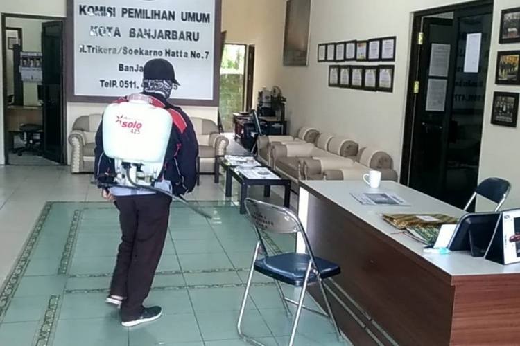KPU Kota Banjarbaru juga melakukan kegiatan penyemprotan disinfektan secara mandiri dan berkala. Selain itu, Sekretariat KPU Kota Banjarbaru juga telah memaksimalkan upaya ketersediaan fasilitas penunjang lainnya seperti penyediaan sabun cuci tangan berikut saluran air yang diperlukan.