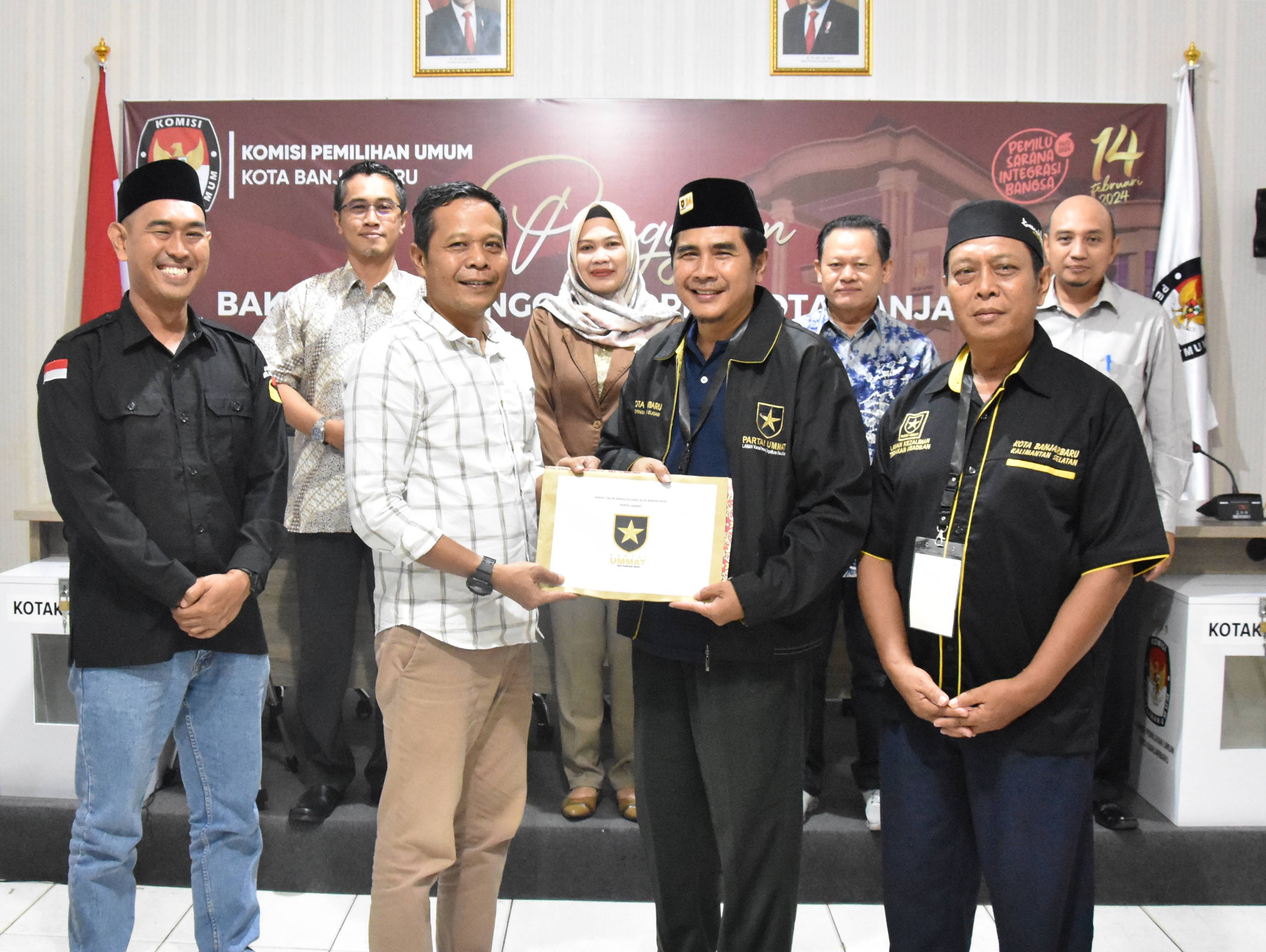 Partai UMMAT mengajukan Bakal Calon Anggota DPRD Kota Banjarbaru untuk Pemilu Tahun 2024, Minggu (14/5/2023). Pengajuan dilakukan oleh Ketua Tugimo dan Sekretaris, Subari