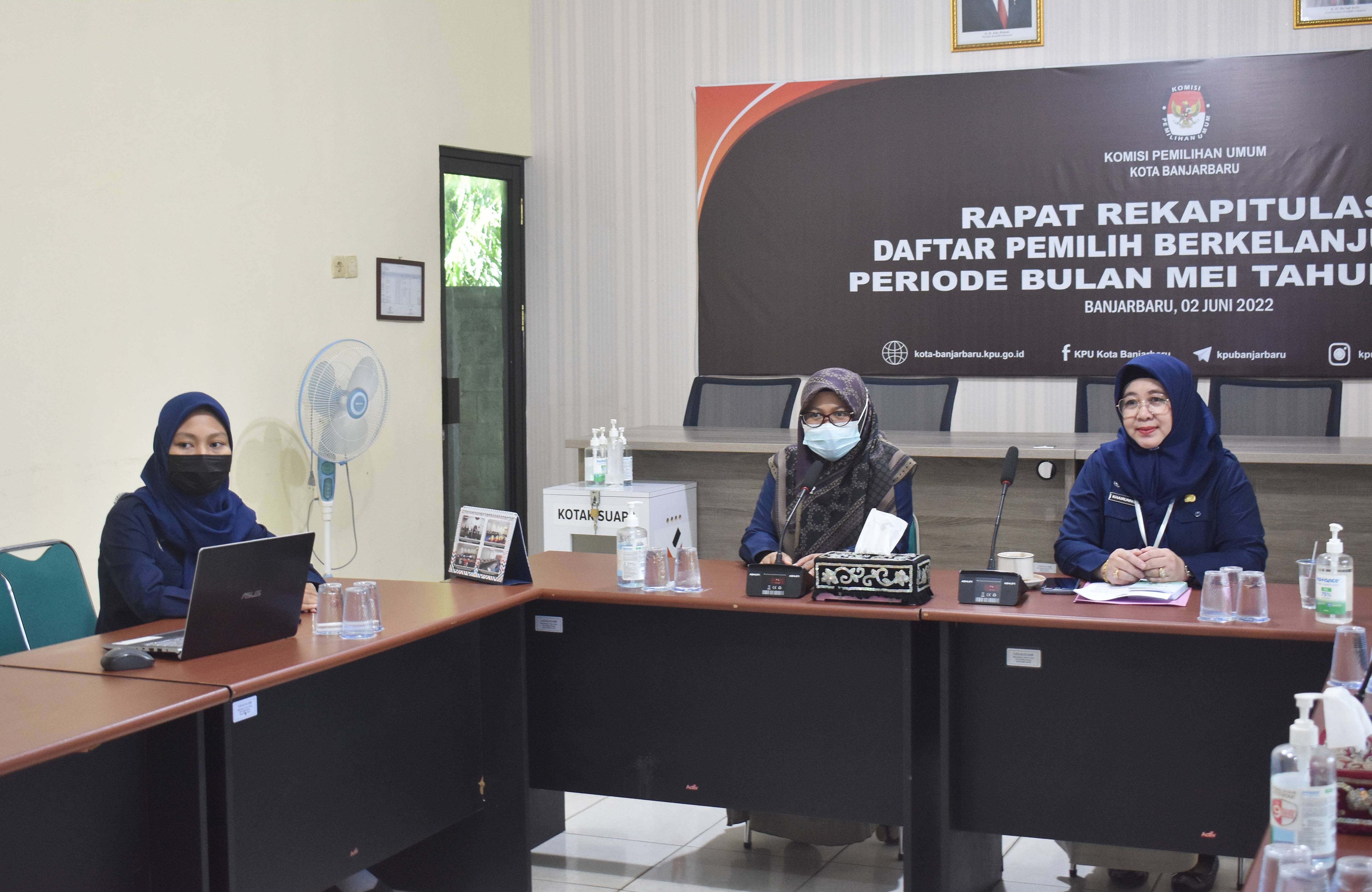 KPU Kota Banjarbaru mengikuti Rapat Koordinasi Pemutakhiran Data Pemilih Berkelanjutan (PDPB) periode Bulan Mei Tahun 2022 yang dilaksanakan oleh KPU Provinsi Kalimantan Selatan secara luring maupun daring, Selasa (07/06) yang juga diikuti oleh KPU Kabupaten/Kota se Kalimantan Selatan.