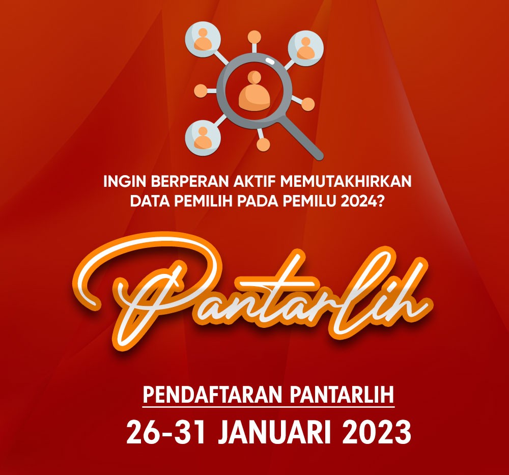 Silakan tunggu pengumuman resmi dan pembukaan pendaftaran Pantarlih! Jadilah bagian dari usaha untuk menghasilkan daftar Pemilih yang komprehensif, akurat, dan mutakhir dalam penyelenggaraan Pemilu 2024 dengan cara menjadi Pantarlih.