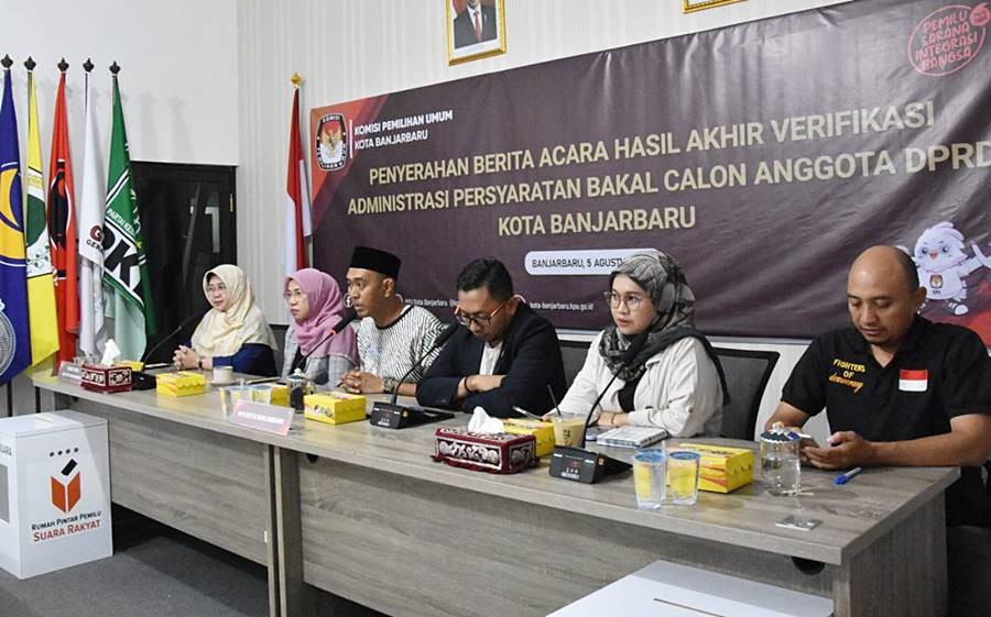 KPU Kota Banjarbaru melaksanakan penyerahan Berita Acara Hasil Akhir Verifikasi Administrasi Persyaratan Bakal Calon Anggota DPRD Kota Banjarbaru dan Sosialisasi Keputusan KPU RI Nomor 996 Tahun 2023 kepada Partai Politik tingkat Kota Banjarbaru, Sabtu (05/08)