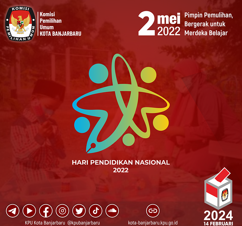 Komisi Pemilihan Umum (KPU) Kota Banjarbaru mengucapkan selamat Hari Pendidikan Nasional bagi seluruh insan pendidikan di Kota Banjarbaru, dan Indonesia pada umumnya. Hari Pendidikan Nasional, 2 Mei pada tahun 2022 ini memiliki tema "Pimpin Pemulihan, Bergerak untuk Merdeka Belajar".