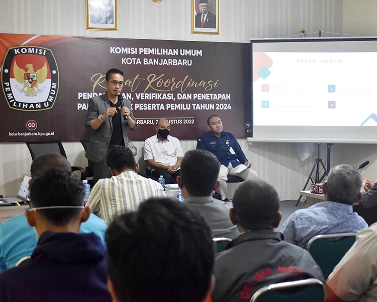 Komisi Pemilihan Umum (KPU) Kota Banjarbaru melaksanakan Rapat Koordinasi (Rakor) bersama pimpinan partai politik se-Kota Banjarbaru pada Selasa (02/08) kemarin. Rakor dalam rangka pendaftaran, verifikasi, dan penetapan partai politik (parpol) peserta Pemilu 2024 tersebut digelar bertempat di Aula KPU Kota Banjarbaru, di Jl. Trikora No. 7.