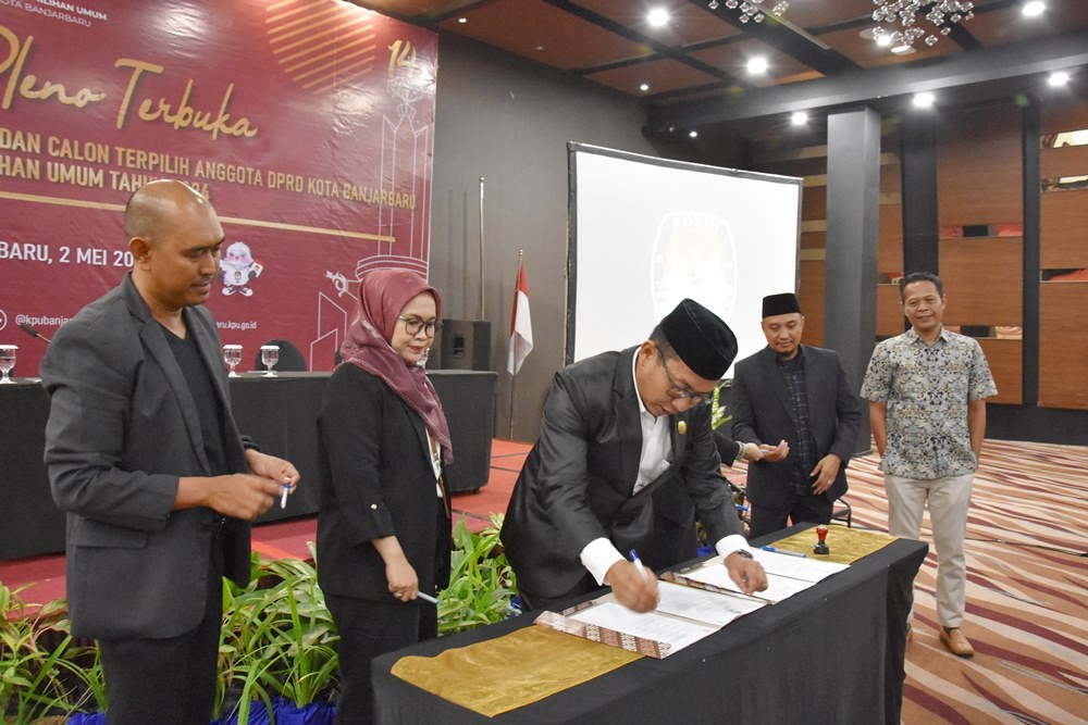 Pada kesempatan tersebut Ketua Divisi Teknis Penyelnggaraan, Dahtiar, membacakan hasil penetapan perolehan Kursi Partai Politik dan Calon Terpilih anggot DPRD Kota Banjarbaru pada Pemilu Tahun 2024, dilanjutkan dengan penandatanganan dan penyerahan Berita Acara oleh seluruh Komisioner