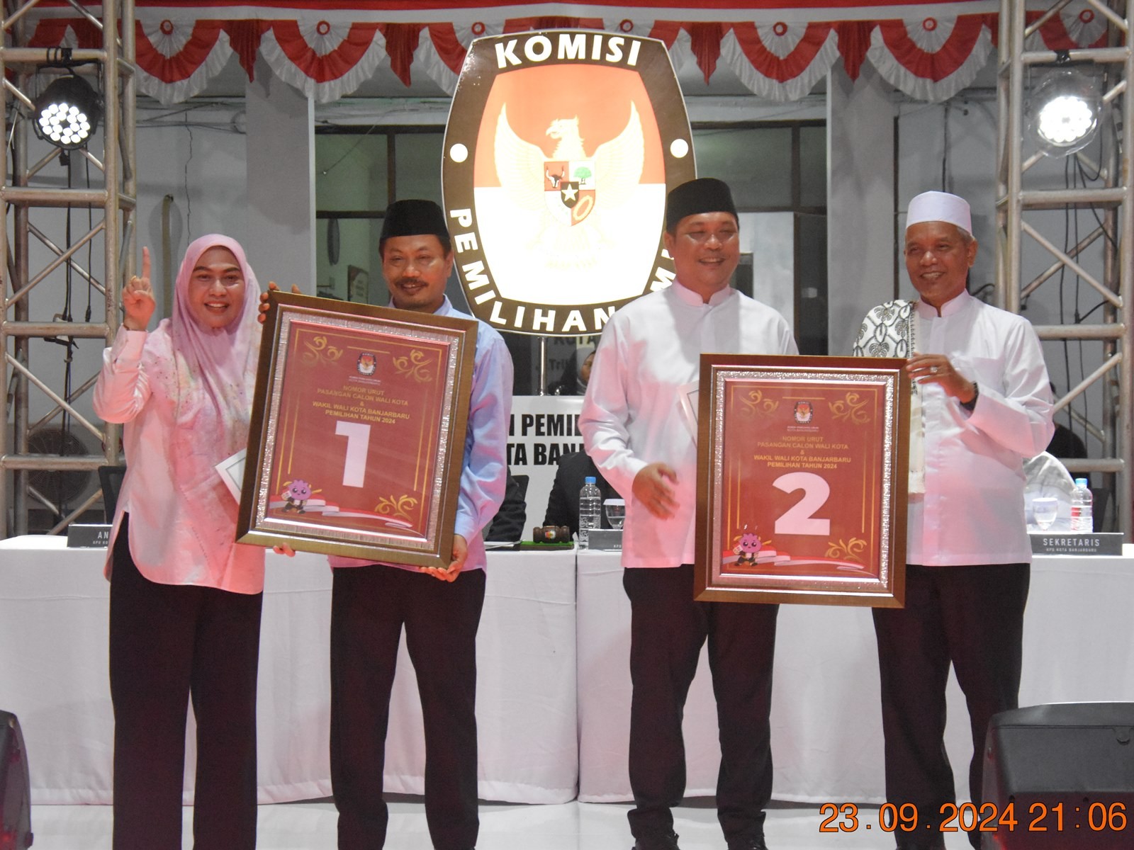 KPU Kota Banjarbaru, Senin (23/09) melaksananakn kegitan Rapat Pleno Terbuka Pengundian dan Penetapan Nomor Urut Pasangan Calon Wali Kota dan Wakil Wali Kota Banjarbaru pada Pemilihan Serentak Tahun 2024.