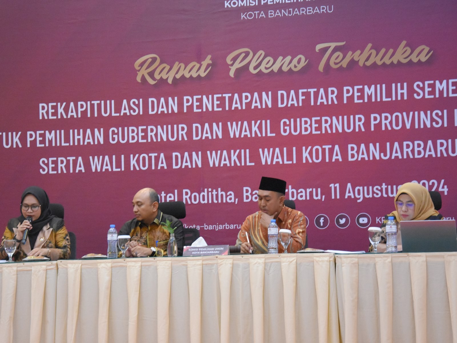 Rapat Pleno Terbuka Rekapitulasi dan Penatapan Daftar Pemilih Sementara (DPS) Tingkat Kota Banjarbaru pada Pemilihan Serentak Tahun 2024
