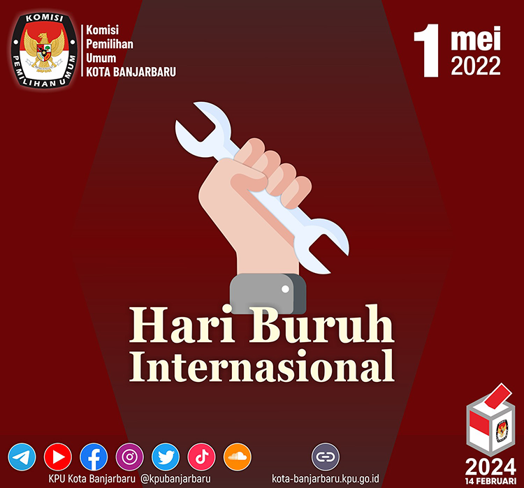 Komisi Pemilihan Umum (KPU) Kota Banjarbaru mengucapkan selamat memperingati Hari Buruh Internasional kepada seluruh pekerja di Kota Banjarbaru khususnya, dan Indonesia umumnya.