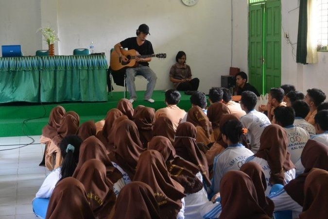 Penanggung Jawab Divisi Sosialisasi, Pendidikan Pemilih dan Pengembangan SDM KPU Kota Banjarbaru, Mhd Wahyu NZ berkeliling sejumlah sekolah tingkat SMA/sederajat di Kota Banjarbaru untuk menjumpai para siswa. Selain menyampaikan sejumlah materi dengan substansi pendidikan politik, juga mengajak para siswa bergembira melalui lagu-lagu.