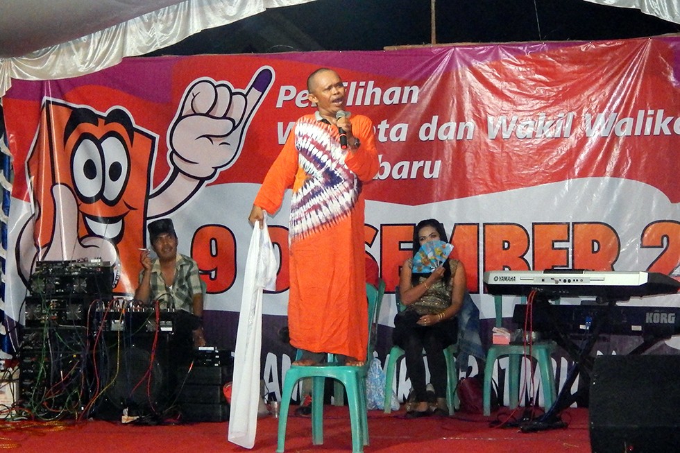 Menghadirkan Syukur, salah seorang seniman yang bergelut pada seni-seni tradisional Banjar, pesan-pesan terkait Pilkada Banjarbaru 2015 disampaikan dengan cara yang segar.